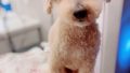 トリミング台の上では協力的にしていてくれます。